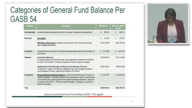 Commission hears staff analysis of fund balances and reserves; staff to examine policy targets