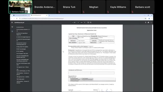 Richland County HHS: placement fund and institutional costs highlighted in monthly report