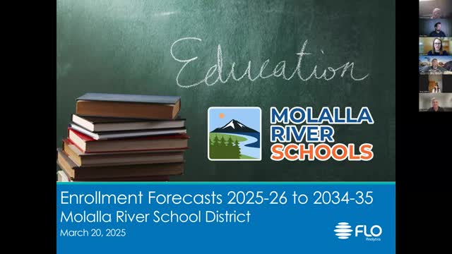 Flow Analytics presents 10-year enrollment forecast for Molalla River SD 35; kindergarten cohorts expected to remain small short-term