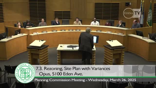 Planning commission recommends approval for OPUS headquarters project at 5100 Eden Avenue, with conditions on access and ground-level materials