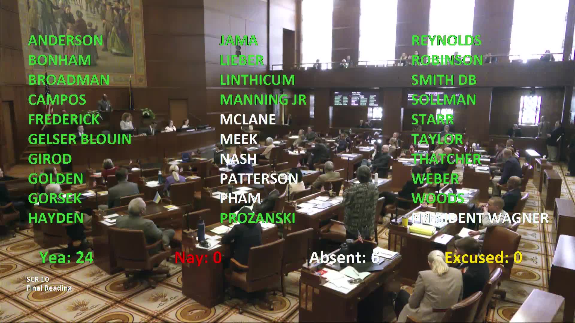 Votes at a glance: Senate moves calendar items and adopts three memorial resolutions