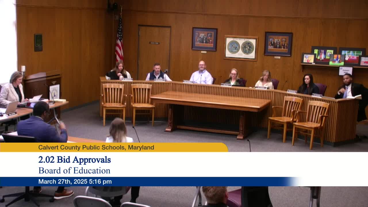 Calvert County Board approves cafeteria disposable-supplies contracts and Zendesk help-desk renewal