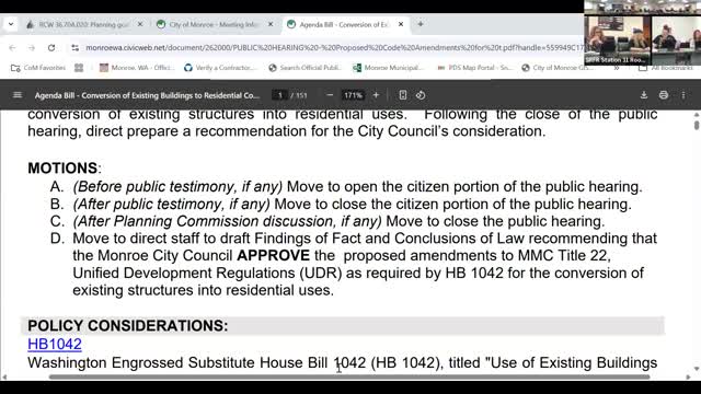 Planning commission backs drafting findings for code changes to allow commercial-to-residential conversions under HB 1042
