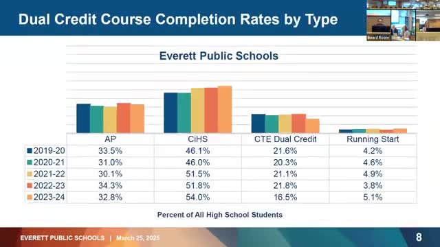 Everett board hears dual‑credit expansion, postsecondary enrollment patterns; running start shows highest fall enrollment rate