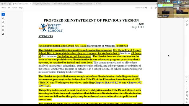 Board adopts Title IX‑era policy revisions by single reading to comply with OSPI and court guidance