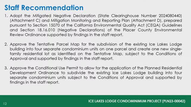 Planning commissioners approve Ice Lakes Lodge condominium map and planned residential development with conditions