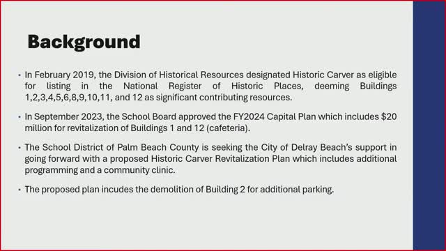 Commission signals support for School District's Historic Carver campus revitalization; demolition of one building for parking discussed