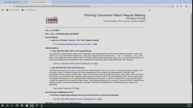 Planning Commission recommends approval for Epic Estates rezoning amid community concerns over traffic, notice and consistency with the comprehensive plan