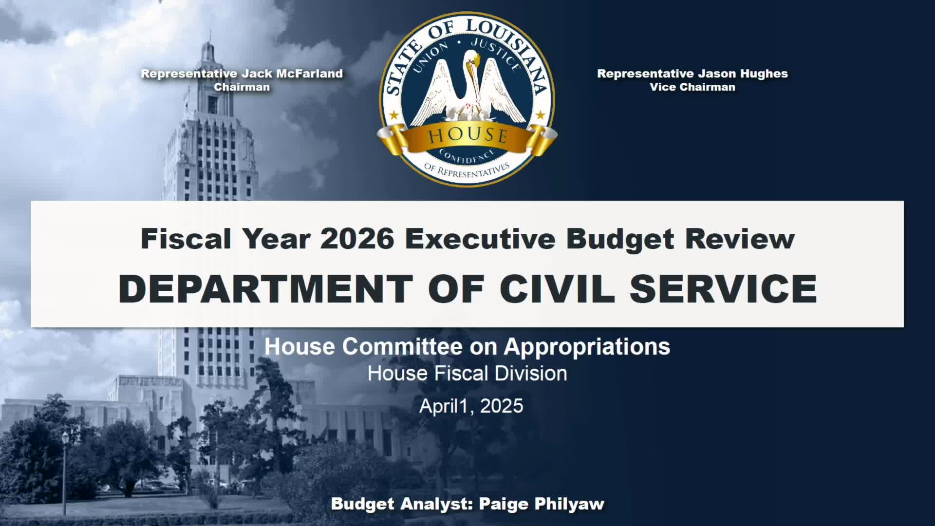 Civil Service presents FY26 budget, highlights Act 655 skills‑based hiring; Board of Tax Appeals seeks two staff positions
