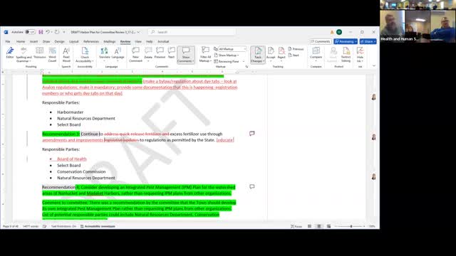 Committee debates fertilizer language and enforcement limits in harbor plan