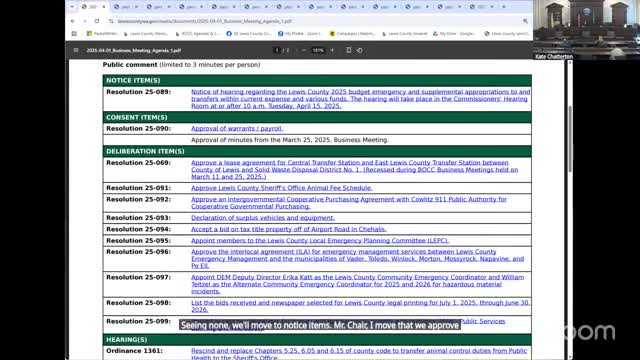 Lewis County commissioners approve budget amendment notice, multiple resolutions and animal-control ordinance 13-61