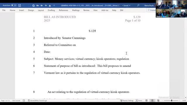 Senate Finance reviews S.129; debate centers on moratorium, transaction limits and consumer protections for crypto kiosks