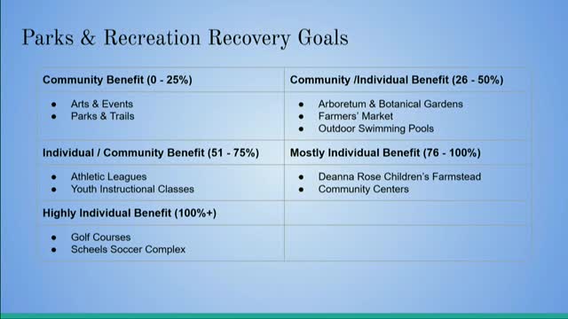 Parks and Recreation reports fee adjustments for 2023–2025, keeps cost‑recovery targets