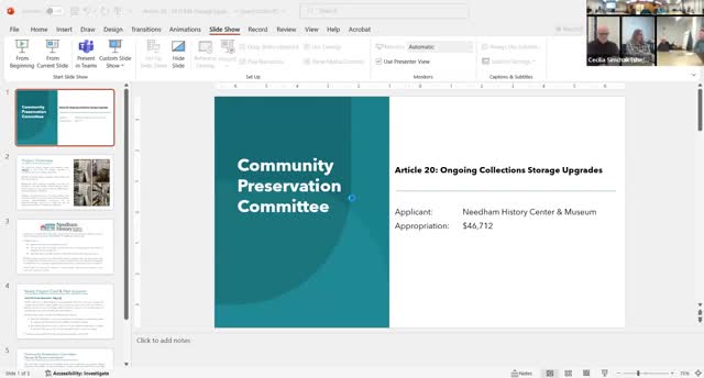 Needham CPC finalizes Town Meeting logistics: minutes approved, presenters, room coverage and fact-sheet deadlines discussed