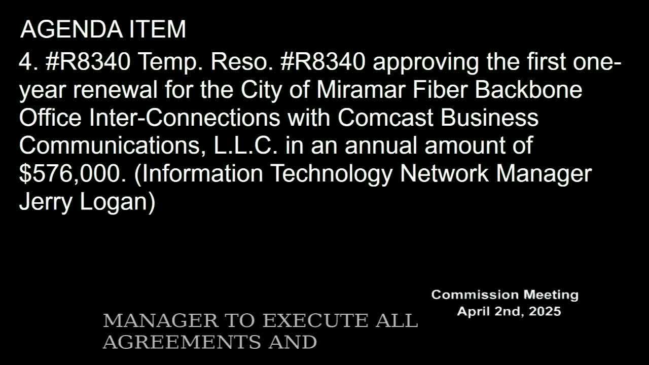 Miramar OKs $576,000 Comcast fiber backbone renewal to support parks Wi‑Fi and public safety