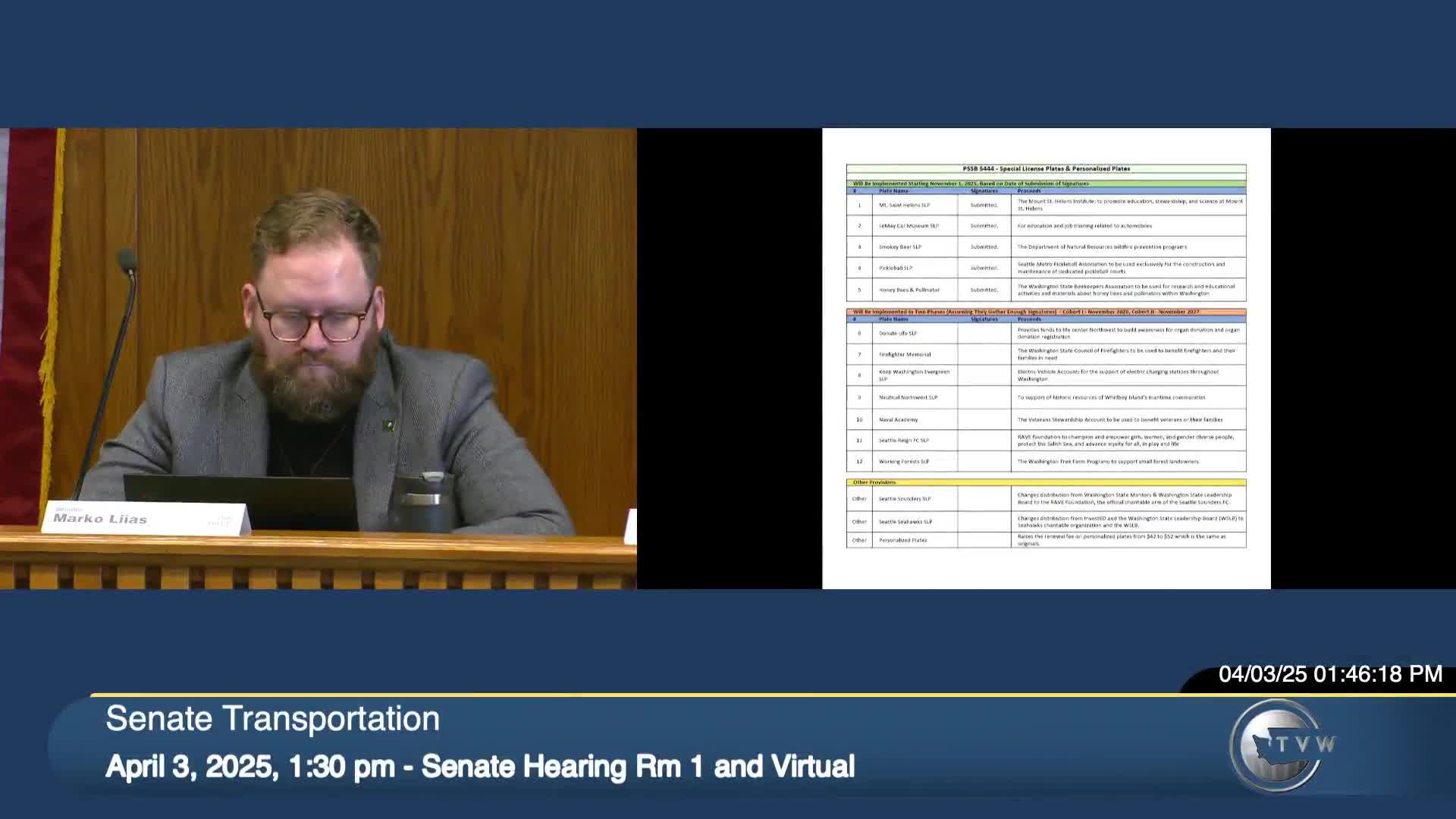 Committee hears proposed substitute for up to 12 special license plates and oversight work group