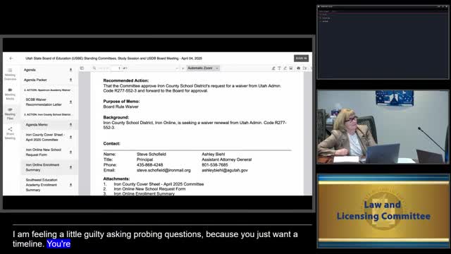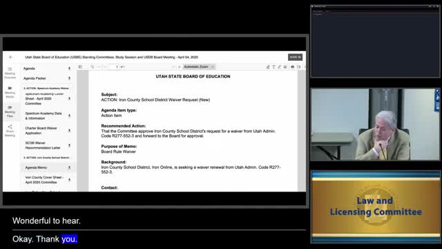 Committee grants Iron County School District timeline waiver to separate Iron Online from alternative high school