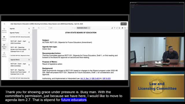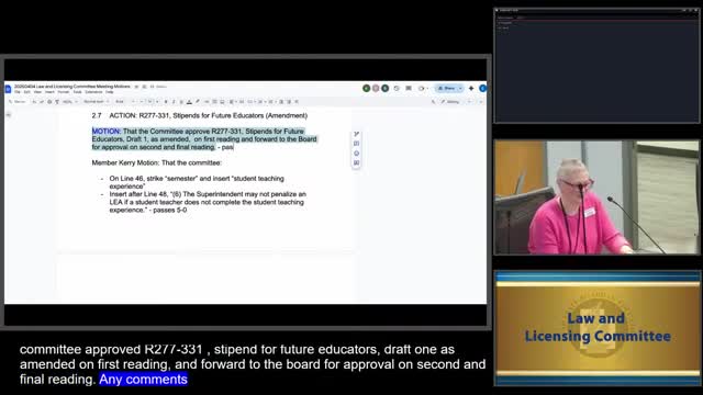 Committee amends stipend rule: affidavit requirement and protections for LEAs added