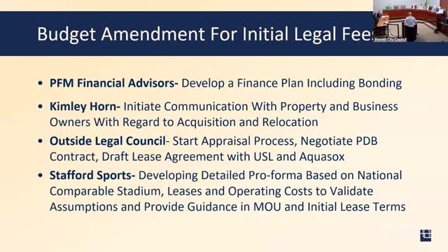 Everett staff brief council on legal-fee budget for proposed outdoor stadium; members press for itemized costs
