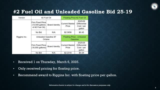 Facilities committee reviews fuel and maintenance bids, approves boiler change order for North auditorium pool