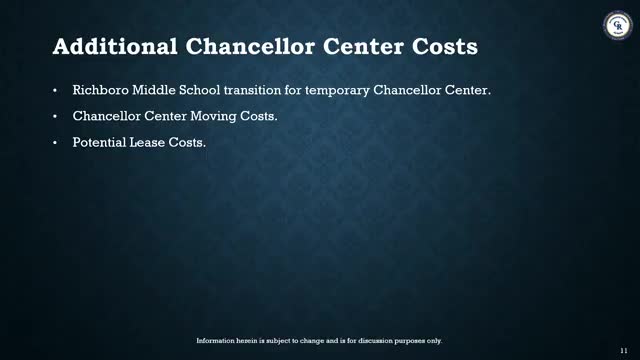 Board asks for detailed estimates for Chancellor Center, two elementary renovations, middle‑school addition and stadium as master‑plan priorities