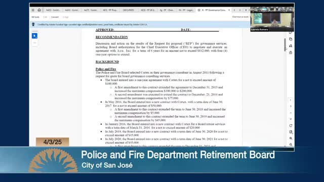 San Jose retirement board authorizes staff to sign multi‑year contracts with Chiron, Reed Smith and Aon