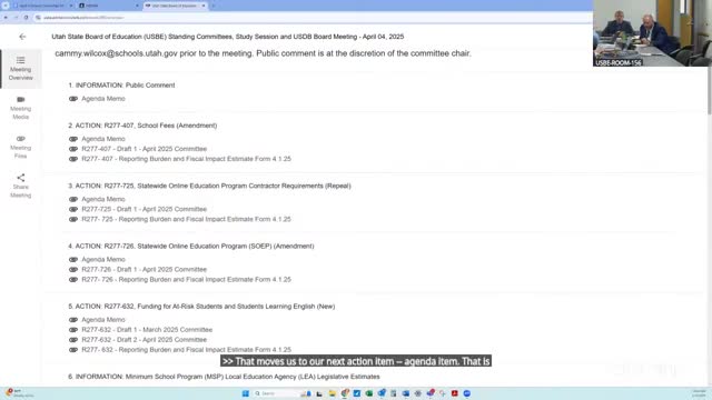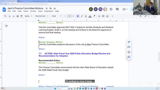 Finance committee amends school fees rule, forwards R277-407 to full board