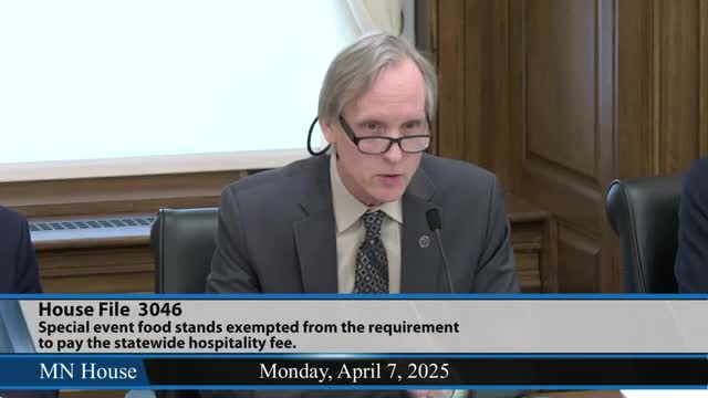 Bill would exempt small community special-event food stands from $40 state hospitality fee; committee laid bill over