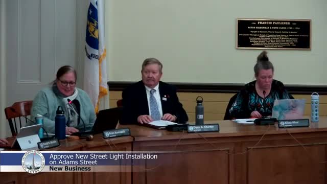 Select Board approves up to two streetlights on Adams Street, focused on intersections/curves