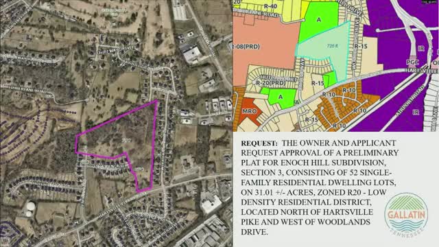Staff flags missing items, road‑stub and FAA easement questions on Enoch Hills Section 3 preliminary plat