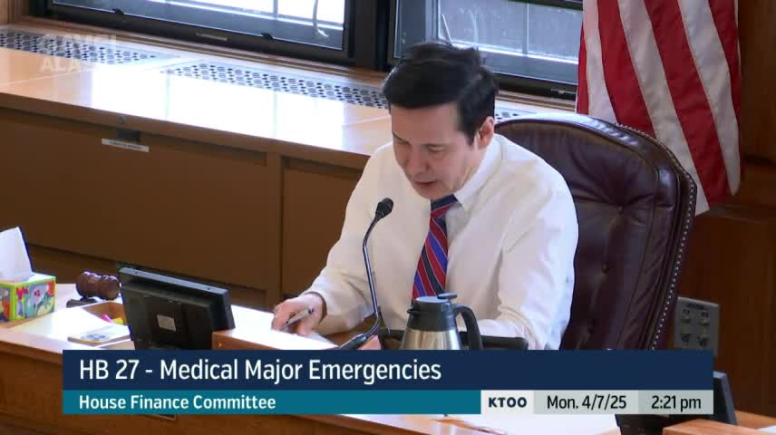 House Finance hears bill to expand Alaska’s EMS 'system of care' to include strokes and heart attacks; fiscal note seeks one staffer and data system