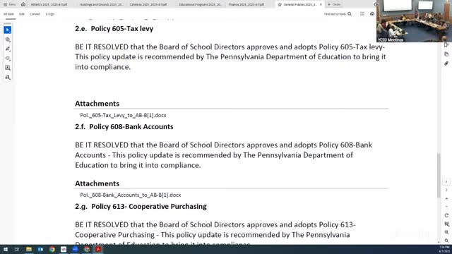 Board reviews policy updates on budget timing, bank citations and payroll sign-in; some changes deferred