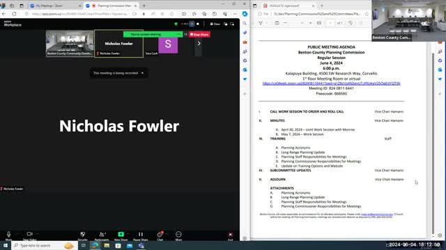 Benton County planners outline two‑phase development code and comp‑plan update; public outreach RFP underway