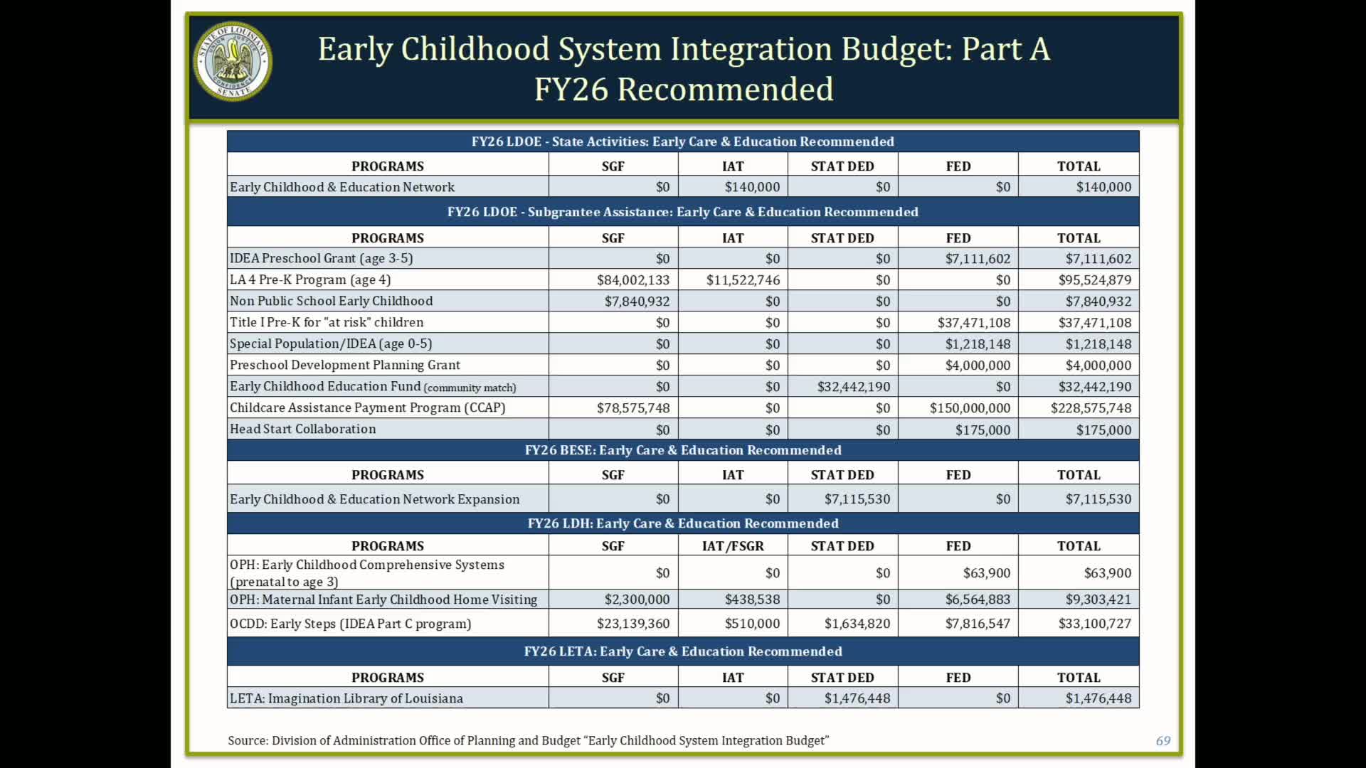 Committee briefed on early‑childhood funding, enrollment declines tied to federal drawdown