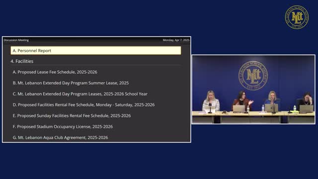 Mount Lebanon SD proposes 4% increase to facility and lease fees; extended day leases submitted for board approval