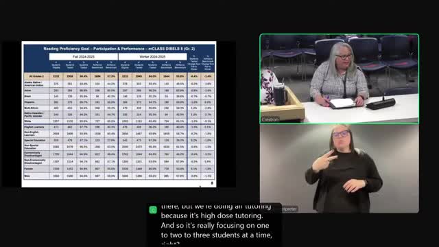 District presents K–2 reading gains and intervention needs; administrators urge more high-dose tutoring and smaller class sizes