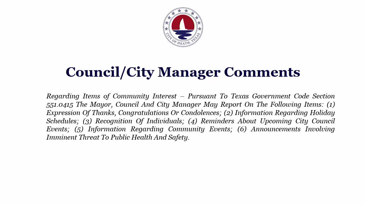 Heath council approves consent items including records-management and code codification ordinances