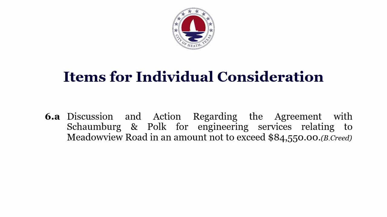 Heath council approves $84,550 design contract for Meadowview Road, asks staff to return with remaining scope