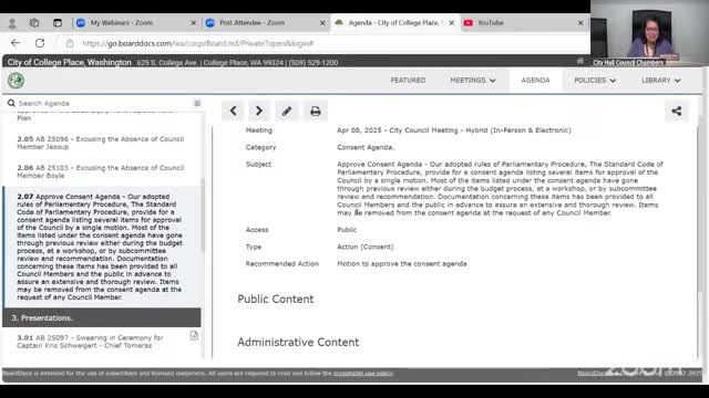 College Place swears in new police captain as chief delivers 2024 annual and bias reports