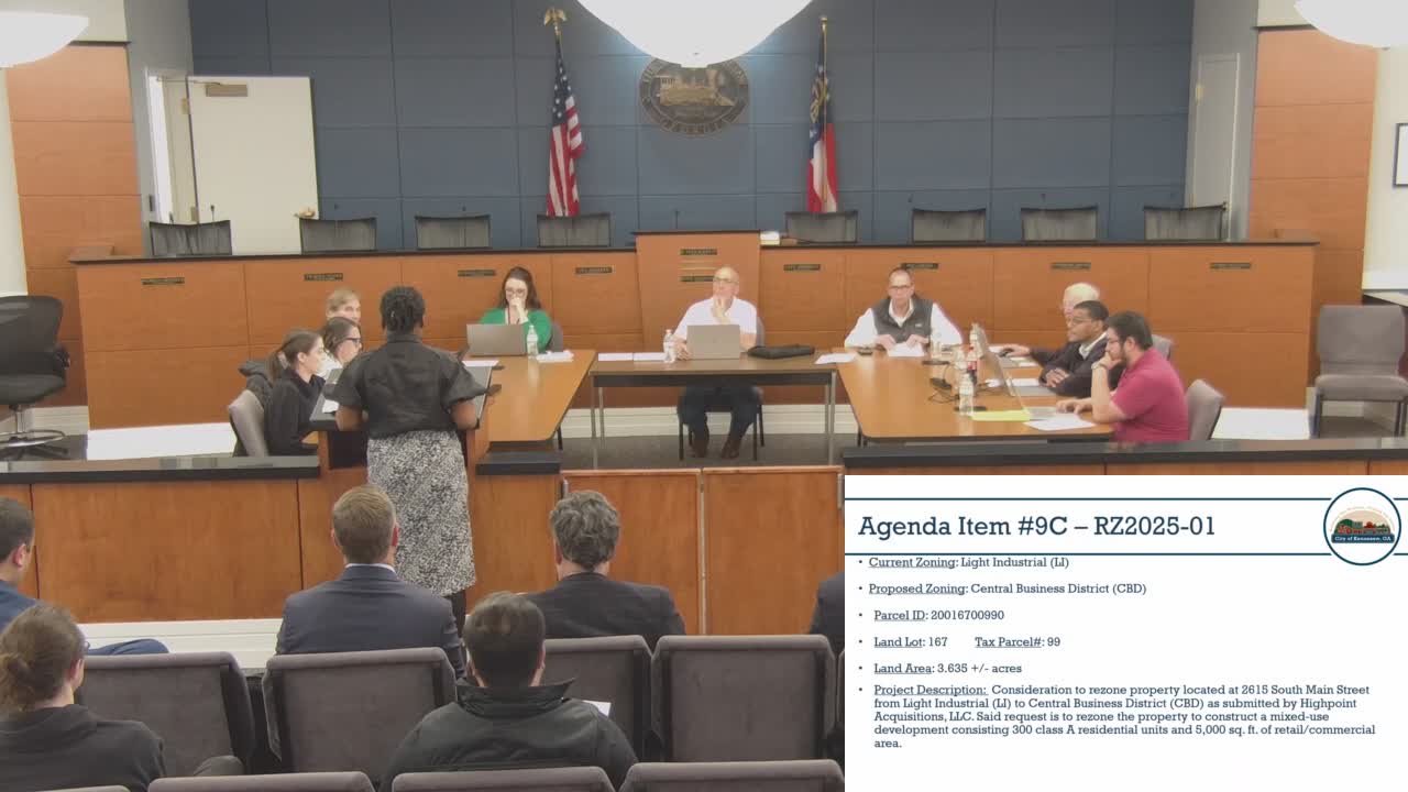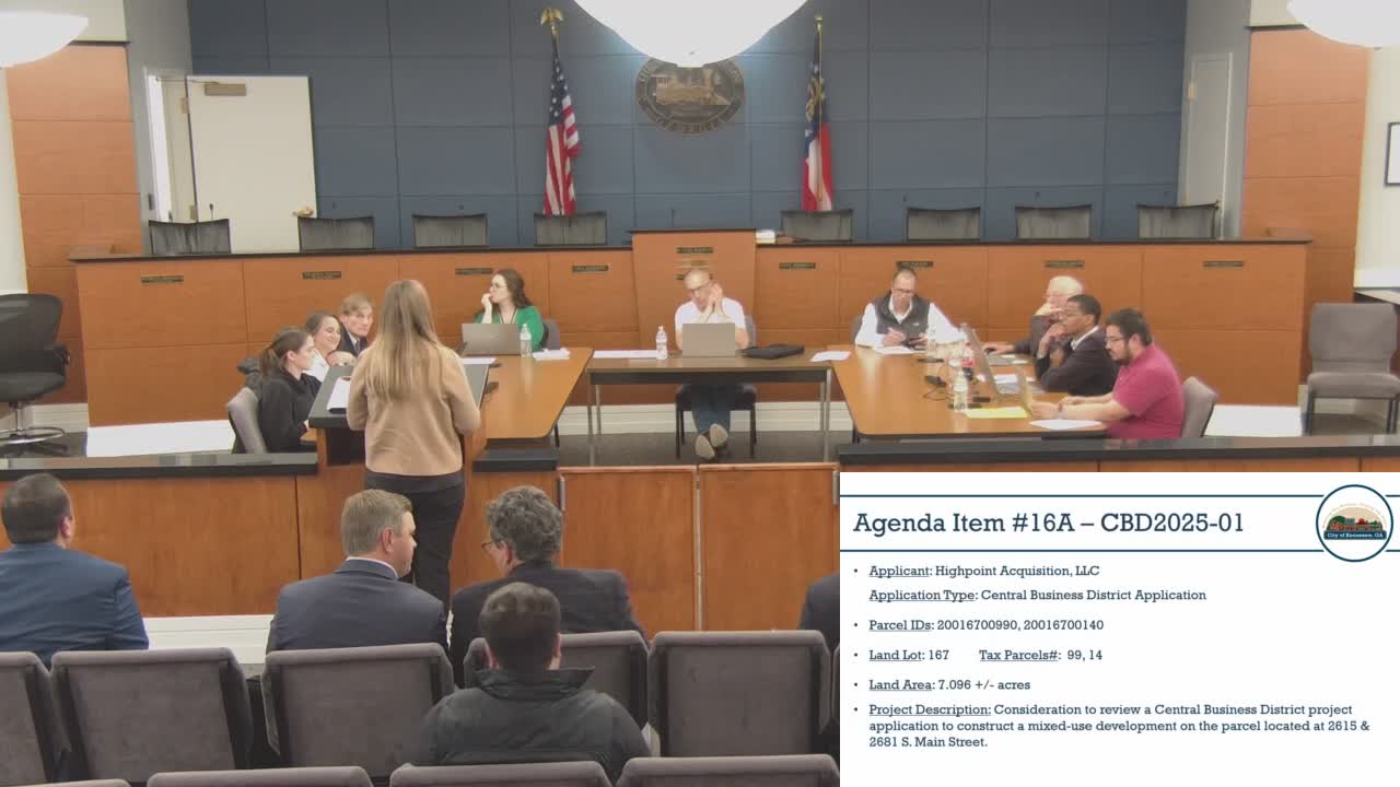 Developer seeks to rezone 2615 South Main Street to CBD for 300-unit mixed-use project; council members pressed on density, traffic and mobile-home displacement