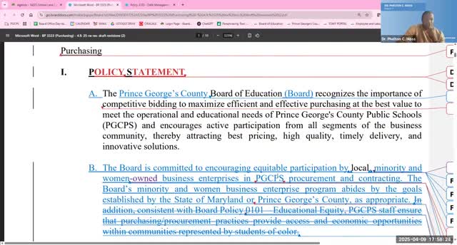 PGCPS purchasing policy revised after OLA findings; committee recommends changes, seeks more detail before public consideration