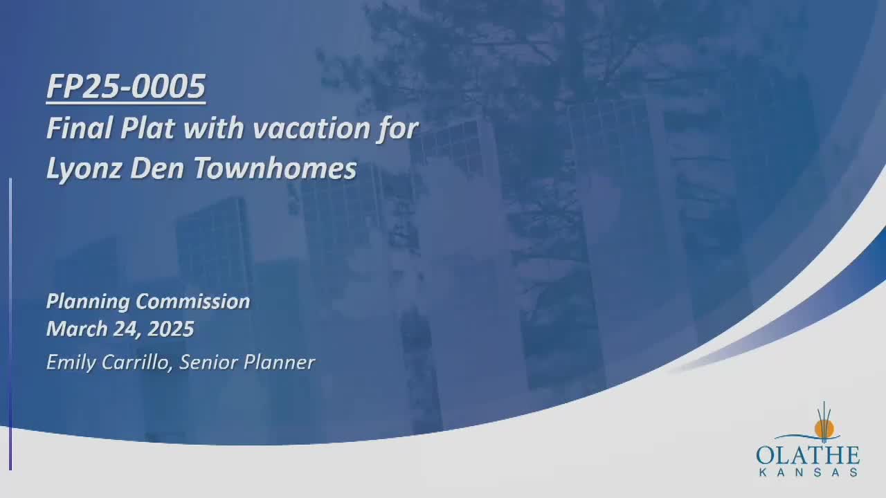 Planning Commission approves final plat and sanitary easement relocation for Lions Den Townhomes
