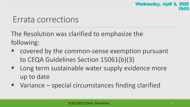 Monterey County planning panel approves 16‑lot Guard subdivision, narrows CEQA "common‑sense" exemption and allows reduced agricultural buffer