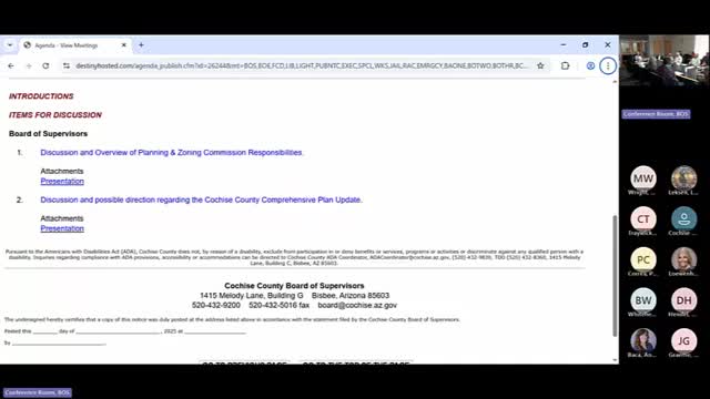 Cochise County supervisors and planning staff debate P&Z attendance rules and appeal procedures
