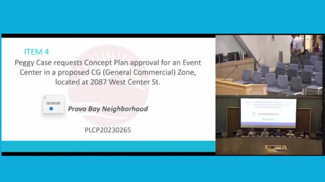 Commission recommends denial unless conditions for Peggy Case event-center zone change; concept plan continued for conditional-use review
