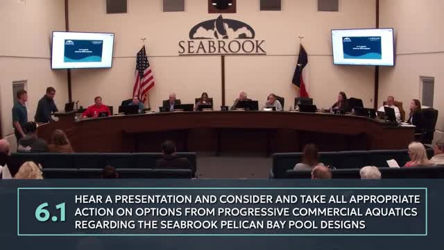 Council reviews three Pelican Bay pool designs; consultants show budgets and timeline, no action taken