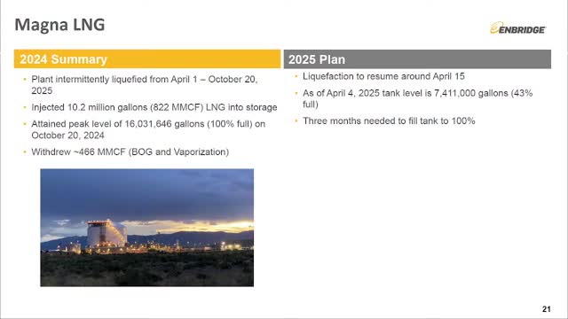 Enbridge’s LNG facility operated successfully during 2024–25 season; used for supply shortfalls and turnover