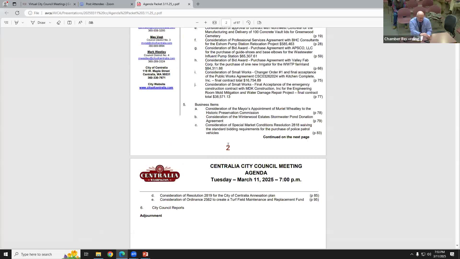 Votes at a glance: Centralia council (March 11, 2025) — appointments, donations, vehicle purchases, turf fund and annexation authorizations