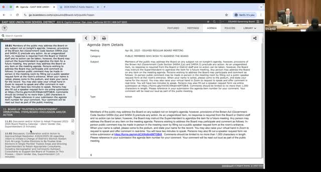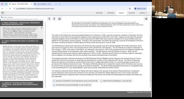 Board authorizes bond refundings, initiates trustee‑area election process and approves calendar and contracts