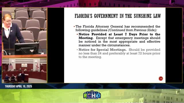Assistant county attorney reviews Florida Sunshine and public-records rules with ECHO advisory board